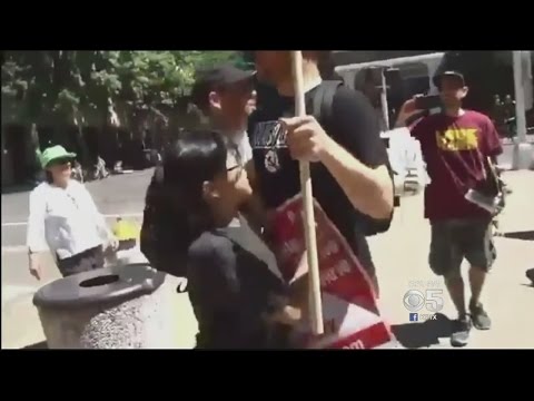 Berkeley Teacher Caught On Video Throwing Punches At Neo-Nazi Supporter - Nazi Punched - A Berkeley teacher was caught on video throwing punches at a neo-Nazi supporter. Cate Cauguiran reports. (6/29/16)